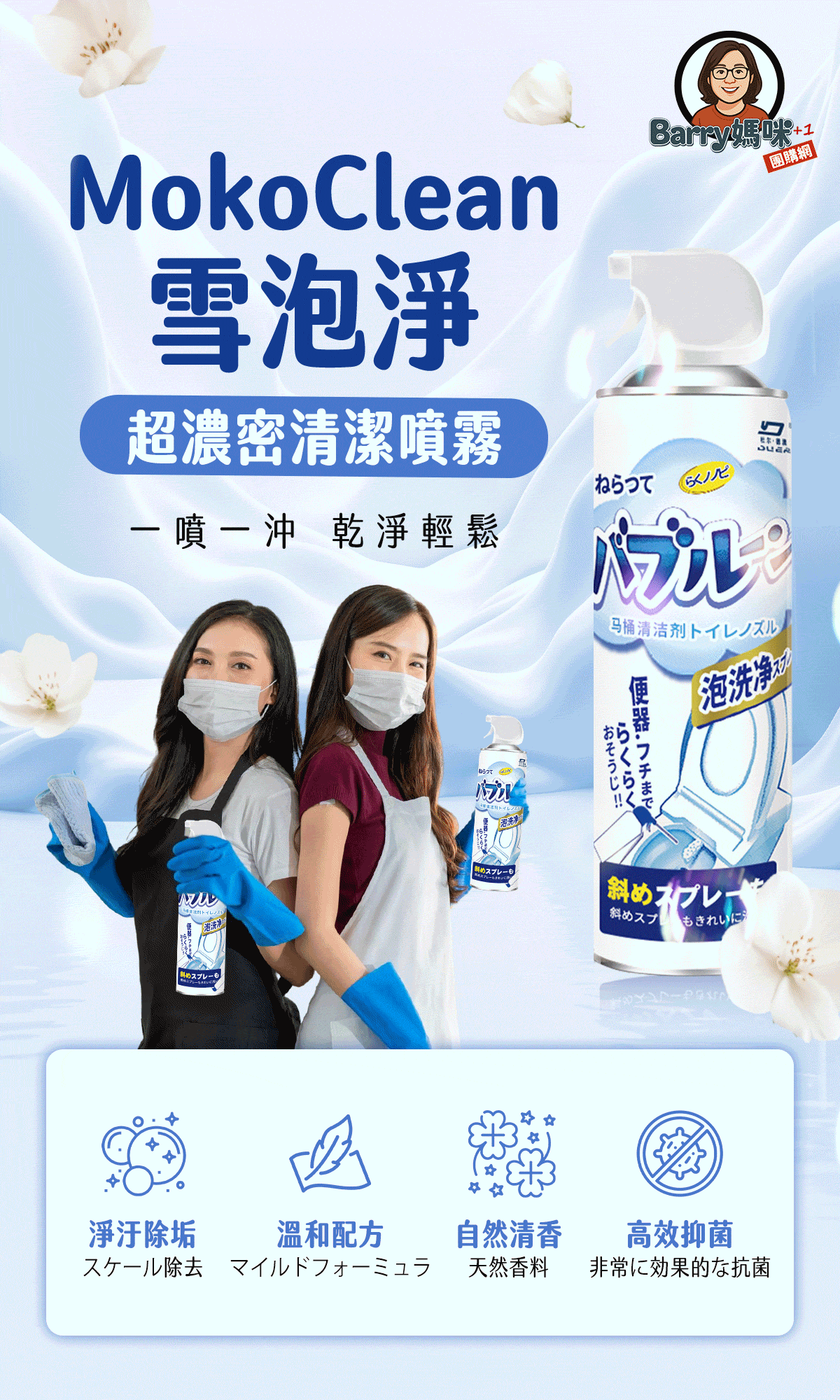 半小時前雪泡淨浴廁清潔慕斯 ,馬桶不刷也能亮 , 浴室清潔一瓶搞定 - 【買三送二】【MokoClean雪泡淨】5入組,細緻泡沫滲透每個角落 免運 NT$990