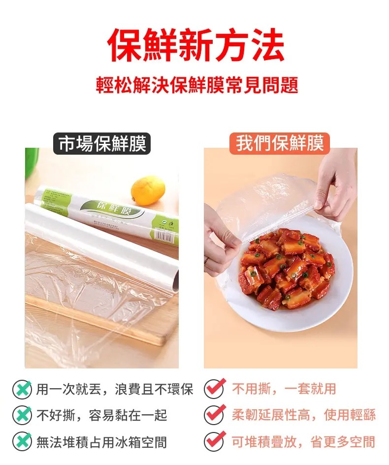 4分鐘前【感恩回饋】食品級鬆緊口鎖鮮膜套剩菜剩飯保鮮套一次性保鮮罩大小碗套通用 - 活動特惠(共發400隻 均價僅需$2.2/隻)免運 NT$899