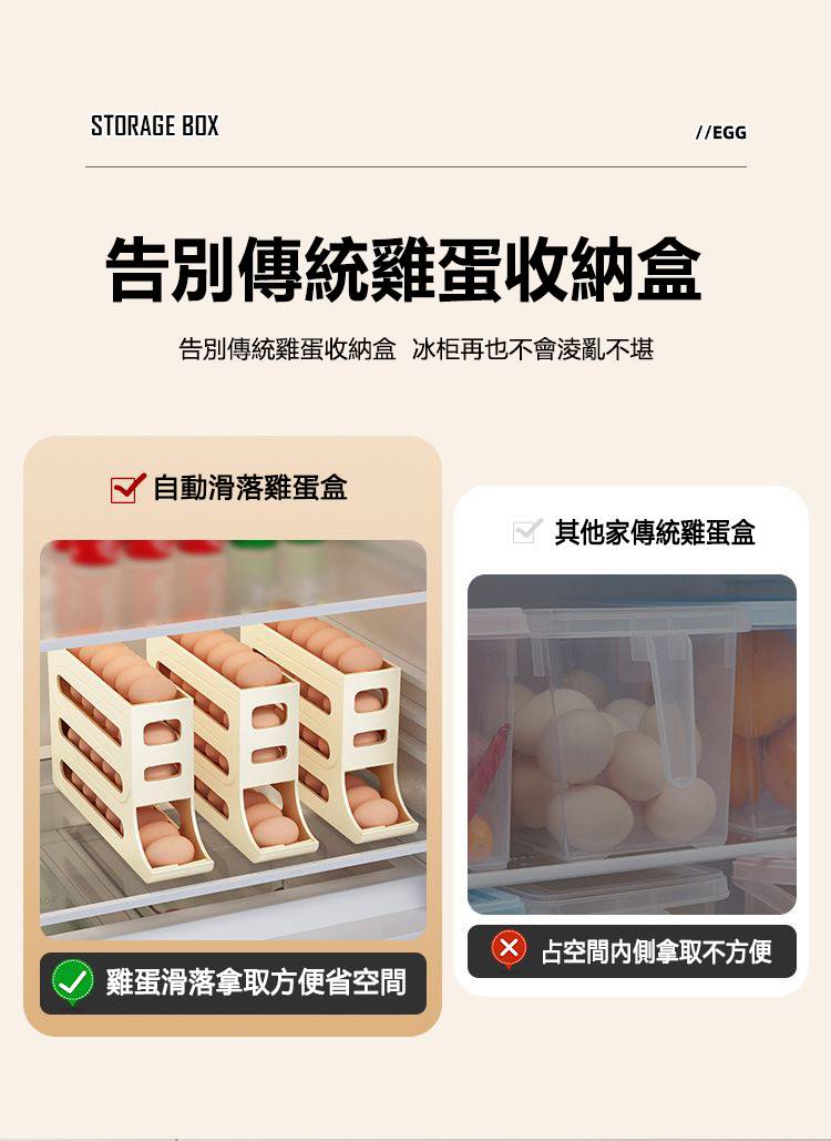 20分鐘前自動滾蛋式雞蛋收納盒 - 3入组(可放90個雞蛋)NT$1098